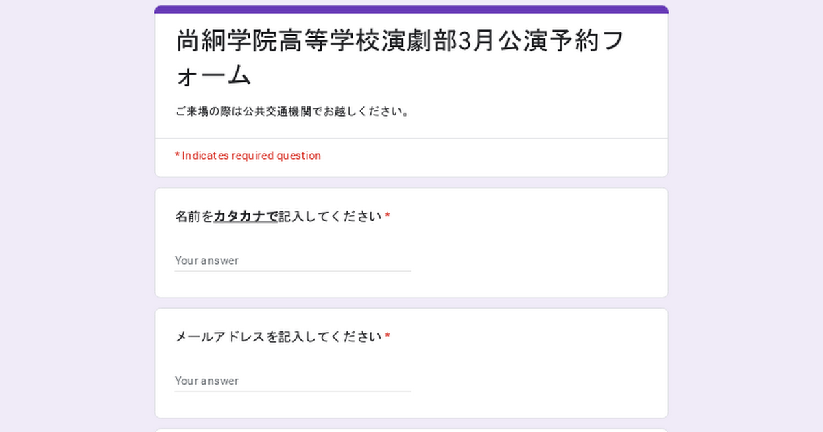尚絅学院高等学校演劇部3月公演予約フォーム