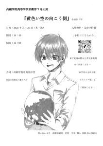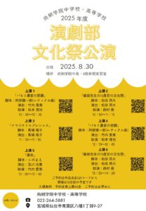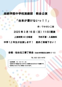 尚絅中高演劇部 2021.07.02 カバー写真を変更アップロード カバー写真を変更アップロード 尚絅中高演劇部 このユーザーアカウントのステータスは 承認済み です。 アバウト アバウト 投稿 投稿 コメント コメント 宮城県高等学校演劇コンクール青葉地区大会のご案内 4か月前 in: お知らせ 0件のコメント 尚絅学院中高演劇部 2025文化祭公演のご案内 6か月前 in: お知らせ 0件のコメント 尚絅学院中高演劇部5月公演のお知らせ 11か月前 in: お知らせ 0件のコメント 尚絅学院高等学校演劇部 3月公演のお知らせ 11か月前 in: お知らせ 0件のコメント 尚絅学院中学演劇部 教会公演のお知らせ 11か月前 in: お知らせ 0件のコメント 2024県中央大会 チラシ作ってみました 1年前 in: お知らせ, つぶやき 0件のコメント 尚絅学院中高演劇部 2024文化祭公演のご案内 2年前 in: お知らせ, 公演履歴 0件のコメント 劇団航海記第17回公演『あのご時世から来た男』ご案内 2年前 in: お知らせ, 公演履歴 0件のコメント 仙台商業・仙台三桜・宮城第一・尚絅学院合同公演 2年前 in: お知らせ, 公演履歴 0件のコメント